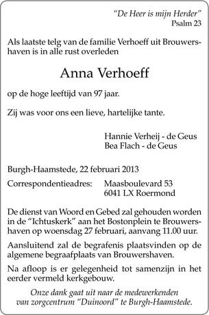 Tonny heeft zich jarenlang ingezet voor de drie zussen van Jan Verhoeff: Pie, Nel en Anna. Ik ontmoette haar ook als ze mijn schoonmoeder in Rotterdam bezocht. Ik had haar als Brouwershavense en als betrokkene bij de familie Verhoeff gevraagd of ze eens wilde nagaan of er documenten over Jan Verhoeff bestaan. Ze is zelf ook familie van één van de verzetsstrijders, via haar oom Iman Marinus van der Bijl uit Zonnemaire.