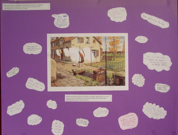 Die kinderen van openbare basisschool 't Staepel'of die dat beeld geadopteerd hebben, dat is geweldig. Hoe die herinnering toch verteld wordt, de indrukken van die kinderen. Ze mogen een stukje schrijven en een tekening maken. Dat wordt opgeplakt. En dan verbaas je je erover wat een indruk dat op hen heeft gemaakt. Wat er op dit ogenblik gebeurt vandaag in Libië en op andere plaatsen in de wereld, zulke erge, erge dingen, waardoor zoiets van vroeger toch voor veel mensen op een achtergrond geraakt. Er zijn veel actuele dingen waarveel meer mensen aan dood gaan, maar dit vind ik zo mooi dat die school dat elk jaar doet, dat die hoofdonderwijzer het elk jaar zo vertelt dat de kinderen die indrukken zo bijzonder op papier zetten. Dat boek wordt zo lang gelezen als dit blijft. En het gaat over alle tien. De namen worden voorgelezen. Het is indrukwekkend."