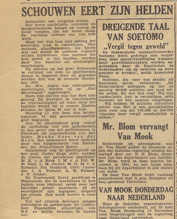 met daaronder een verhaal van dr.L. de Jong over onderduikers.