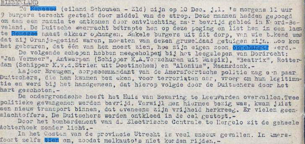 In de Dordtse editie van het illegale Trouw van 2 januari 1945