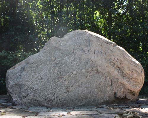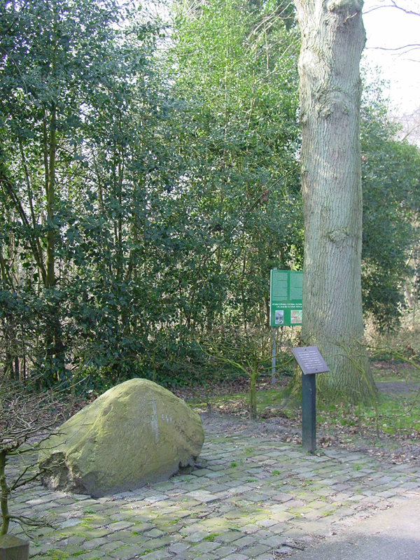 Even verderop, richting kasteel ligt een zwerfkei op de plaats des onheils