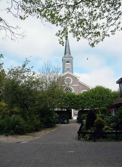 De oude kerk van Schiermonnikoog. In de muur zie je de gedenksteen.