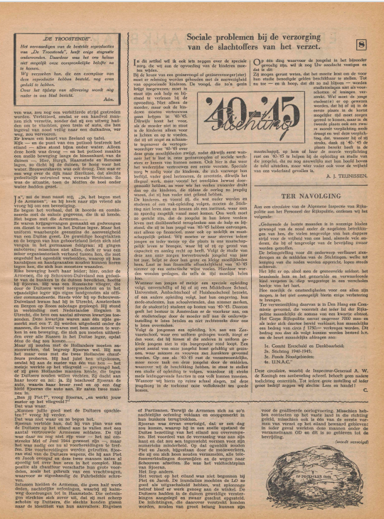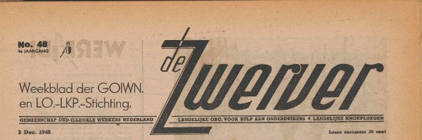 U krijgt in dit hoofdstuk een verhaal te lezen uit het weekblad De Zwerver. Weekblad der GOIWN en LO-LKP-Stichting. GOIWN betekent Gemeenschap Oud Illegale Werkers Nederland. De LO.-LKP.-Stichting staat voor Landelijke Org. voor Hulp aan Onderduikers * Landelijke Knokploegen. Je kunt de weekbladen De Zwerver vinden op lo-lkp.nl